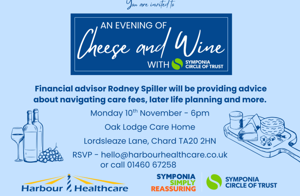 On 10th November 2025 at 6pm, the Oak Lodge Care Home invites the local community to a special Cheese and Wine evening hosted in partnership with Symponia – a national organisation dedicated to supporting families with care funding and planning.