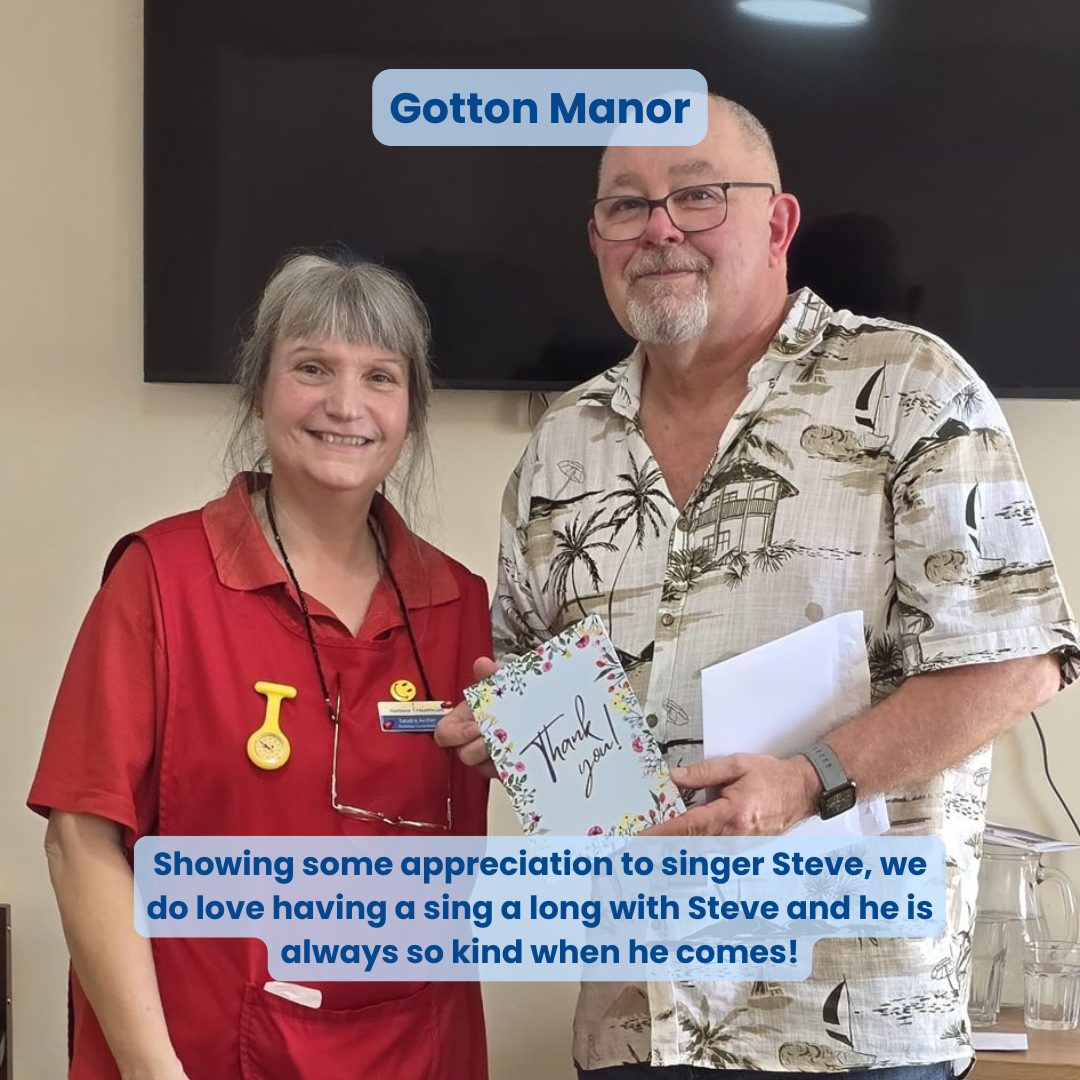 Listen to Daniel, Hilltop Court’s Admin, give a wonderful speech at a local primary school about kindness. Daniel and resident Billy presented thank you cards that residents handmade for the school children to show appreciation for them coming to visit and sing for them.