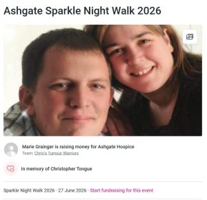 To donate the sponsored walk for this very worthy cause follow the link: https://www.justgiving.com/page/chris-tumour-warriors?utm_medium=FR&utm_source=CL